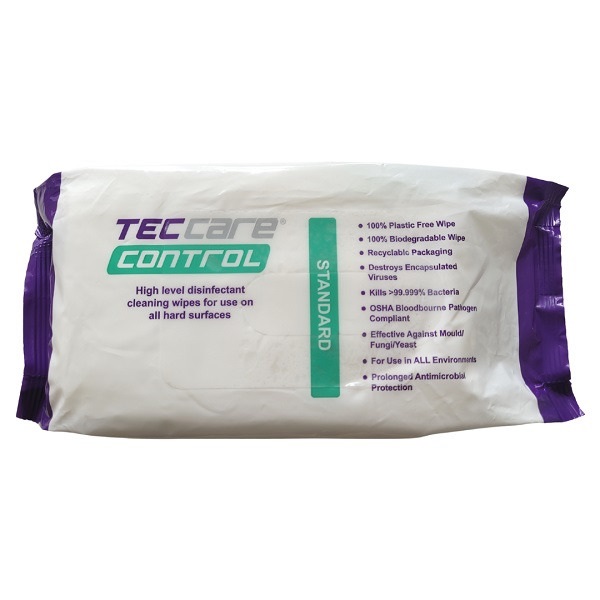 TECcare CONTROL tarjoaa terveydenhuoltoon turvallisen jatehokkaan,yksivaiheisen siivous- ja desinfiointimenetelmän. Desinfektiopyyhe onerittäin tehokas bakteereja, viruksia, sieniä, itiöitä ja mykobakteerejavastaan. Ei sisällä klooria eikä alkoholia, joten tuote on käyttäjälleturvallinen, ihoa ja limakalvoja ärsyttämätön kuin myöselintarviketurvallinen. Soveltuu kaikille laitteille ja pinnoille.