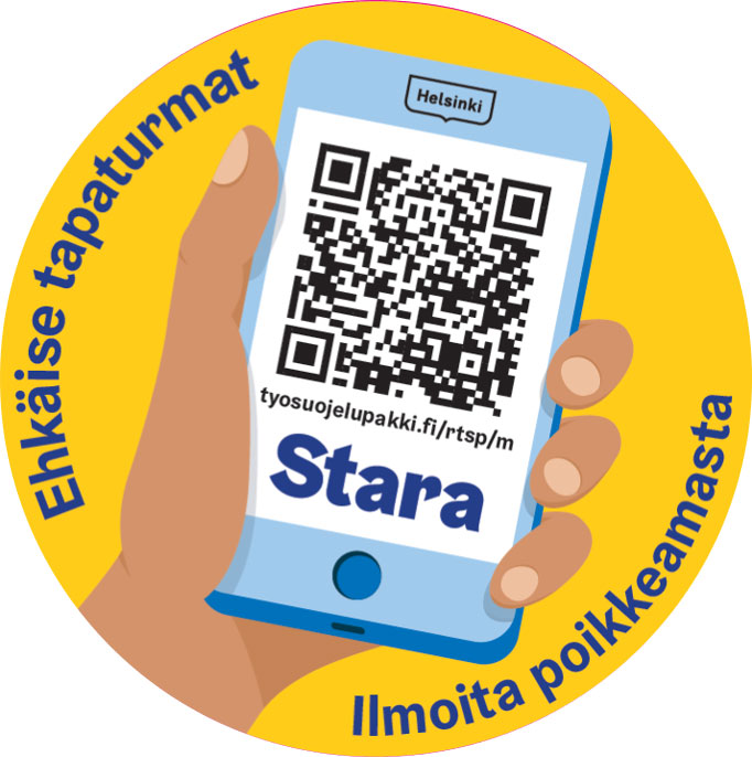 Turvallisuuspoikkeamatarra Helsinki-logolla (QR-koodilla)